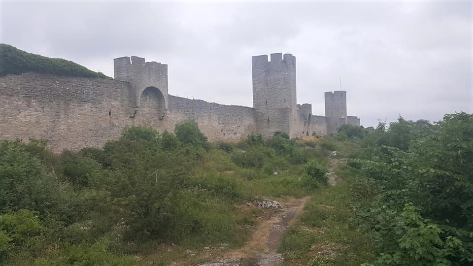 Visbini gəzməyə qala divarları arasındakı qədim hissədən başladıq. Şəhərin dairəvi qala divarları XIII-XIV əsrlərdə tikilib. Bu günə 3,5 kilometrlik hissəsi salamat qalıb.